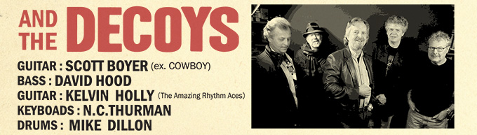 DONNIE FRITTS & THE DECOYS JAPAN TOUR 2009 *** 全公演終了致しました *** ご来場有難うございました!! 9月27日(日)仙台 ダーウィン [web site] 前売¥8,000/当日¥9,000(各税込)各ドリンク別途¥500 開場16:00 / 開演17:00 問:サテンドール2000 TEL 022-225-1743 9月28日(月)渋谷 O-EAST [web site] 前売¥8,000/当日¥9,000(各税込)各ドリンク別途¥500 開場18:30 / 開演19:30 問:03-5458-4681 全席指定席 Opening Act : KARA GRAINGER 9月29日(火)横浜 THUMBS UP [web site] 前売¥8,000/当日¥9,000(各税込)+飲食代別途清算 開場18:30 / 開演19:30 問:045-314-8705 全席自由席(整理番号順入場) Opening Act : Chihana 10月1日(木)名古屋 CLUB QUATTRO [web site] 前売¥8,000/当日¥9,000(各税込)各ドリンク別途¥500 開場18:30 / 開演19:30 問:052-264-8211 全席自由席(整理番号順入場) Opening Act : KARA GRAINGER 10月2日(金)大阪 BIG CAT [web site] 前売¥8,000/当日¥9,000(各税込)各ドリンク別途¥500 開場18:30 / 開演19:30 問:06-6258-5008 全席指定席 Opening Act : KARA GRAINGER ※未就学児童のご入場はお断りさせて頂きます。 ※演奏中の喫煙はご遠慮いただきます。 ※喫煙は、ロビーその他指定の喫煙コーナーでお願い致します。 |