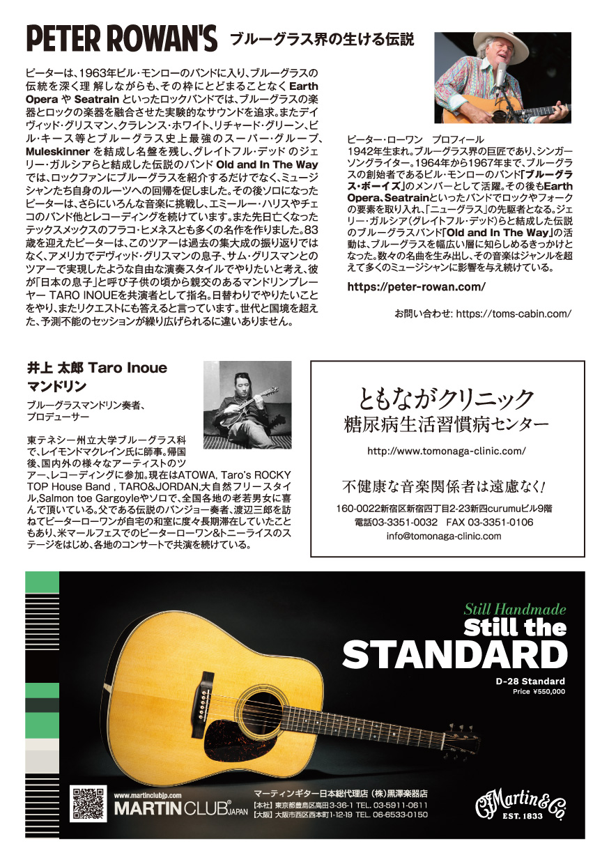 ブルーグラス界の巨匠であり、フォーク、カントリー、ロックの音楽シーンに絶大な影響を与え続け音楽の歴史を動かしてきたピーター・ローワン、最後の来日!